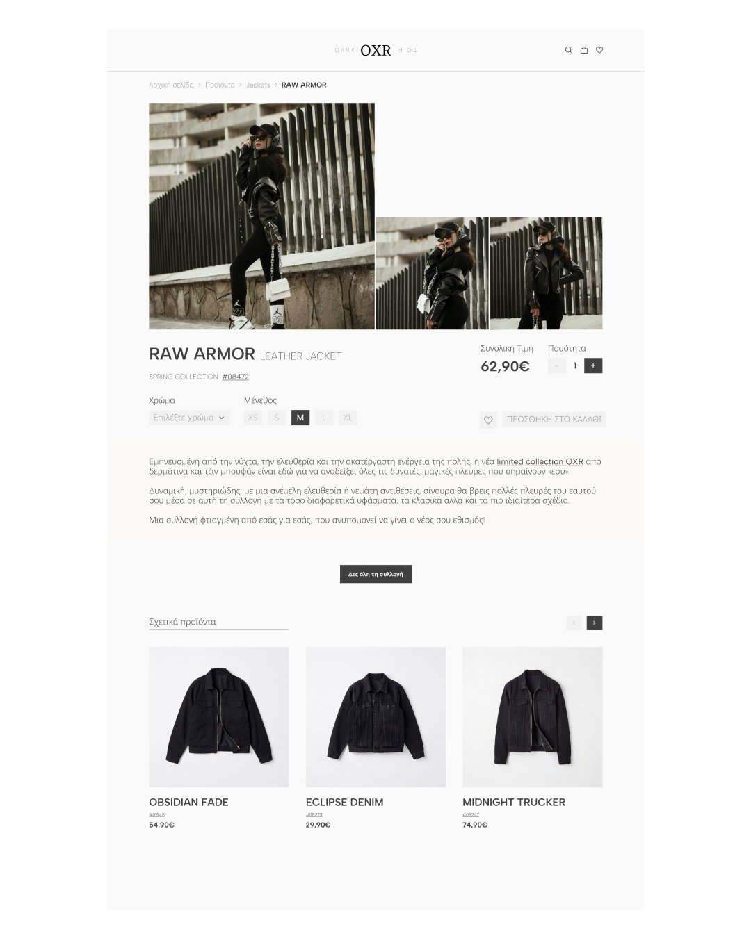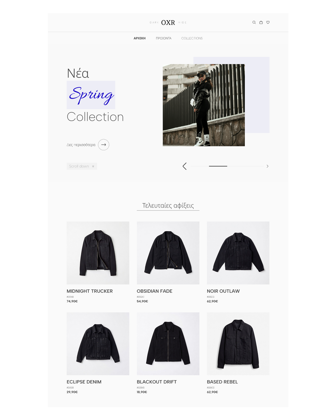 Παρουσιάζουμε το σχεδιασμό ενός σύγχρονου fashion e-shop, με έμφαση σε καθαρή αισθητική, moody ατμόσφαιρα και seamless εμπειρία χρήστη. Από το homepage μέχρι τις σελίδες προϊόντων, η πλοήγηση είναι intuitive, τα visuals high-impact και το shopping flow βελτιστοποιημένο για mobile & desktop. Στόχος: μια ψηφιακή εμπειρία που αναδεικνύει το brand και μετατρέπει επισκέπτες σε πελάτες.